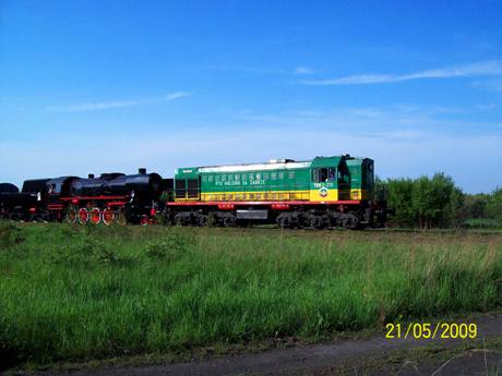TEM2 - 213 podczas postoju w Pyskowicach z transportem parowozu TKh na Dni Techniki Kolejowej do Gliwic.